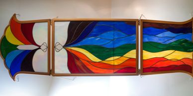 Charlynn's Healing Room is an intentional space where everything within it has purpose and meaning. At one end is our seating area with images of some of the world's masters, a redwood burl table with a Bowl of Discernment, and crystals. The table lies underneath the rainbow stained glass window that represents our evolution as humans. Under the table are crystals and minerals that help the healing process. The other end of the room has lotus candles representing the light within 12 of our energy centers and minerals that honor each center.